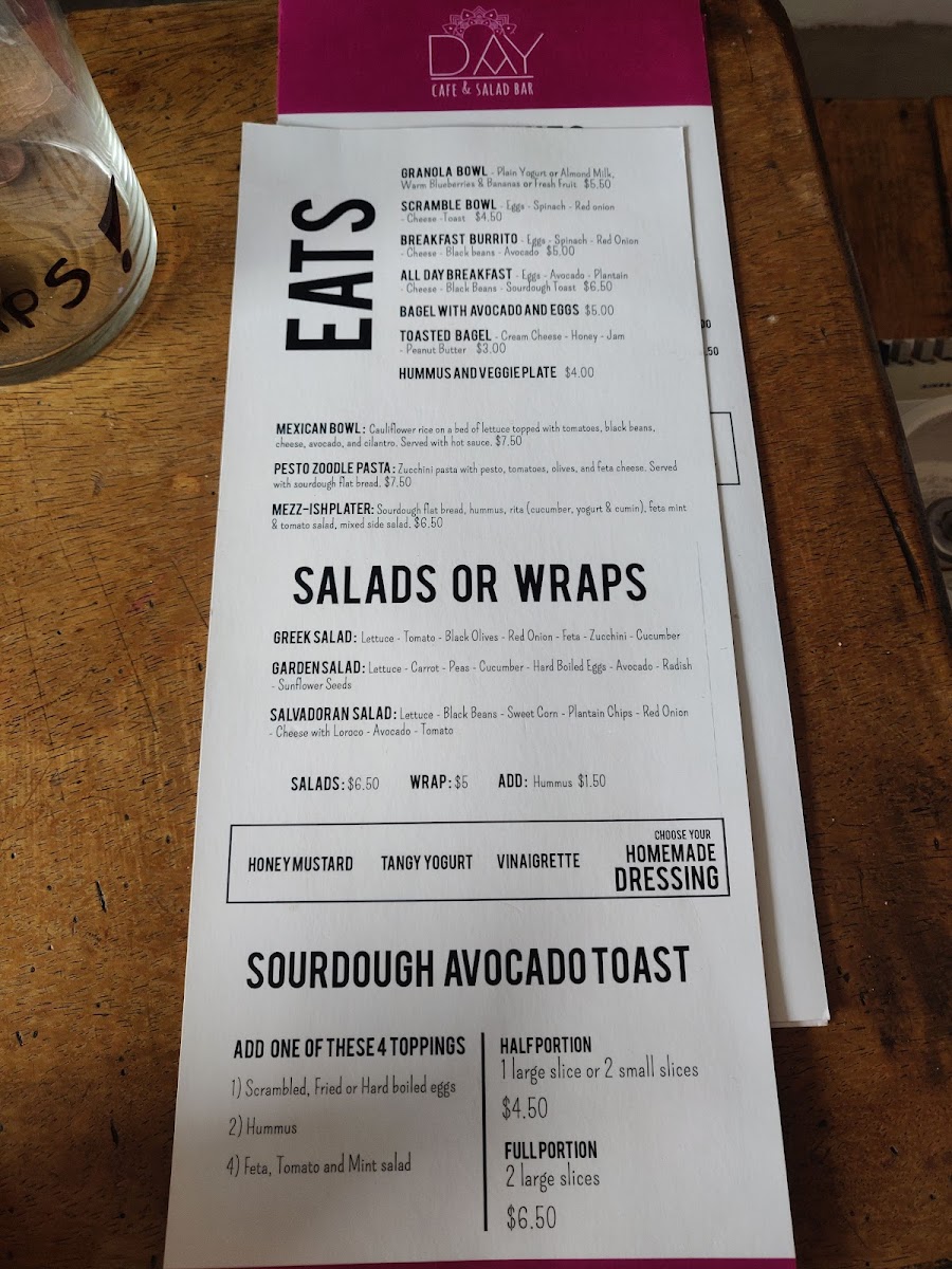 Day Cafe & Salad Bar Menu